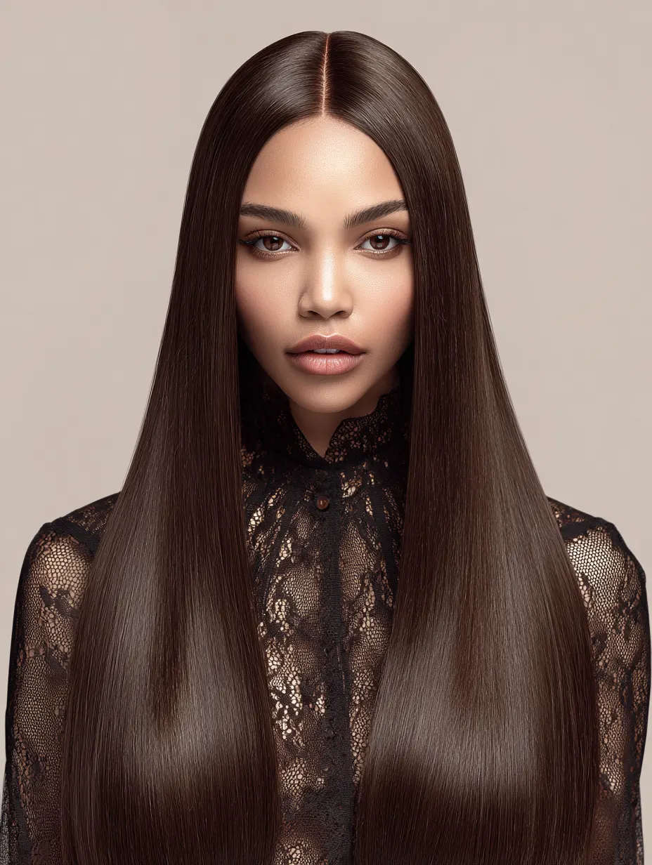 A sleek middle part gives you clean lines and a simple shape that feels modern and fresh. It works for women with oval, heart, or round faces because the straight structure adds length and balance. If you want a polished look for work, dinner, or photos, this style delivers consistency. You can also tuck ends behind the ear for a softer frame.