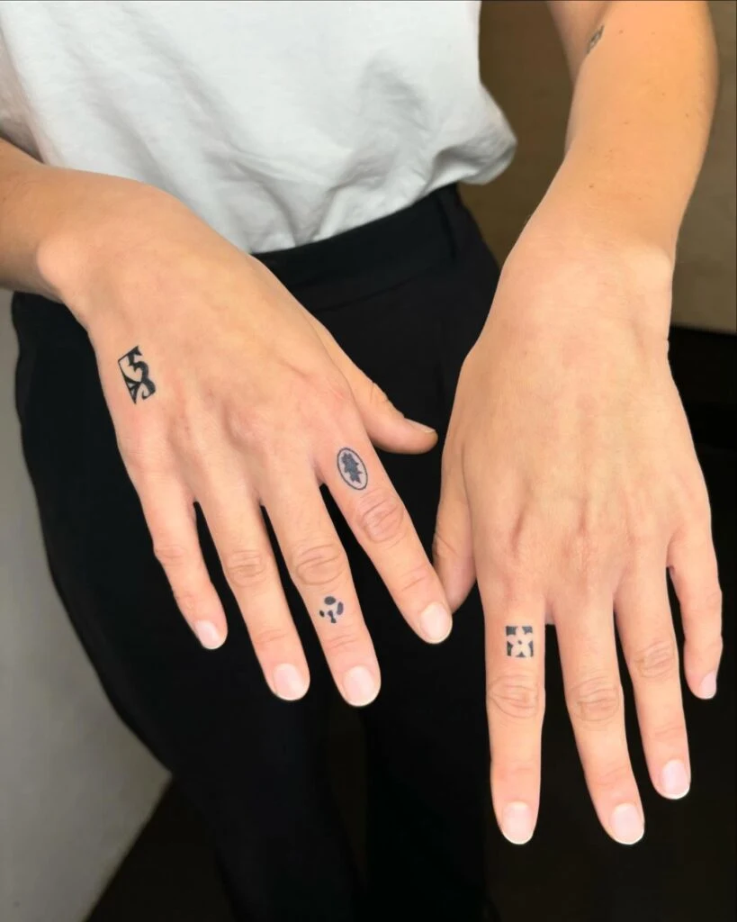 Placed on different fingers and knuckles, these tiny tattoos feel spontaneous and full of character, allowing you to carry a personal story or favorite motif with you at all times. Perfect for someone who loves meaningful ink in small, easy-to-show-off pieces.