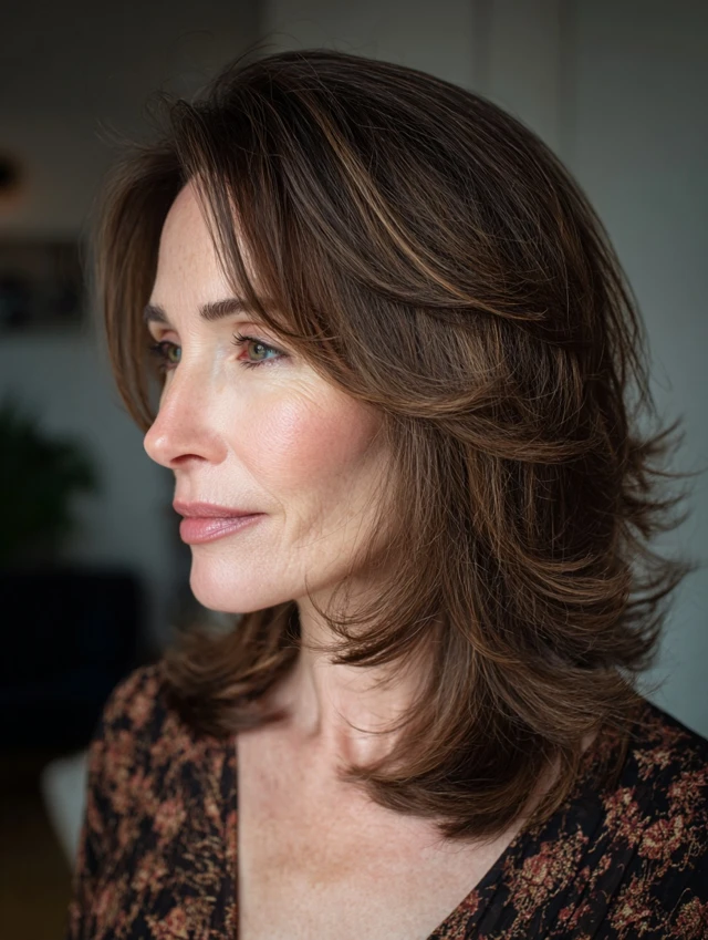 A shoulder-length cut with soft layers air-dries beautifully. The layers prevent heaviness and add natural movement. This style suits oval, square, and heart-shaped faces. Fine hair gains lift without heat tools.