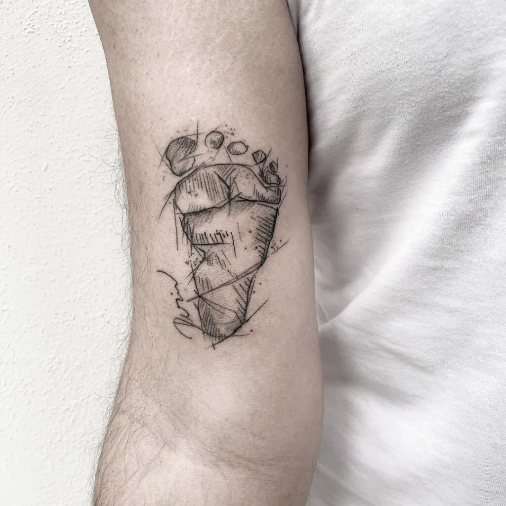 Abstract Sketch-Style Baby Footprint Tattoo