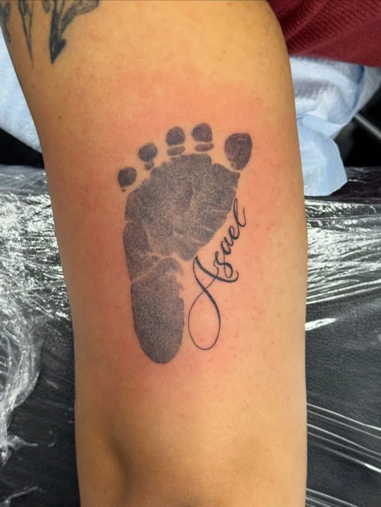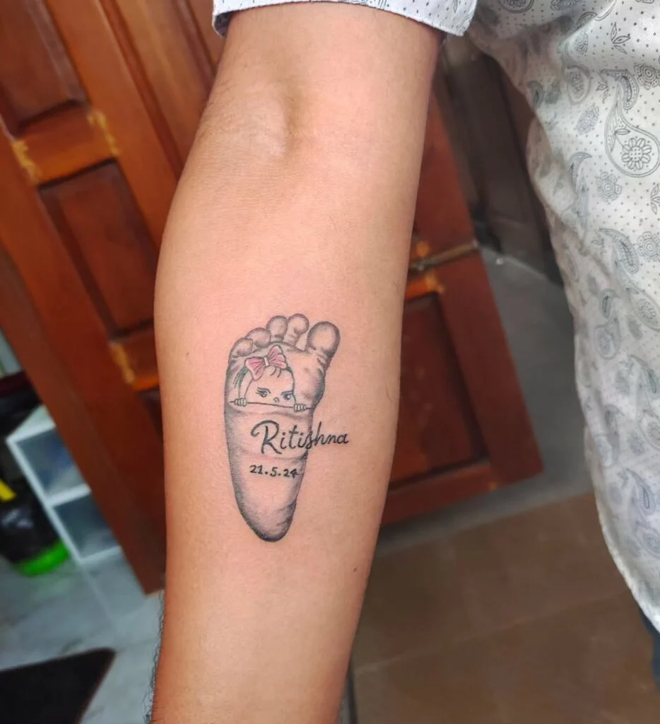 Whether designed with names, dates, or minimalist outlines, baby footprint tattoos hold deep personal meaning. Placed on the arm, chest, or wrist, they offer a constant reminder of your child’s presence and the love that grows with every step.