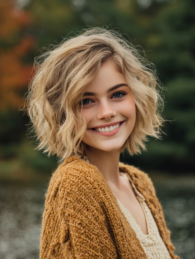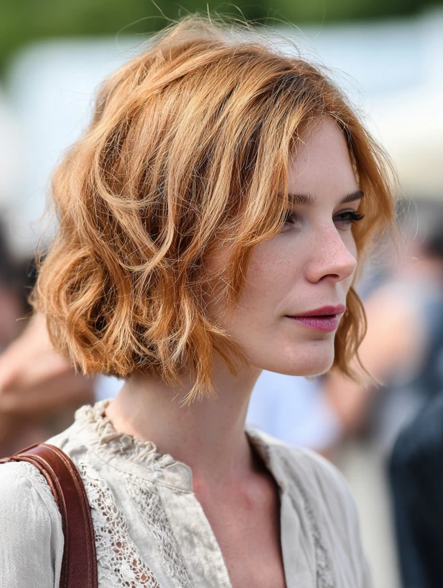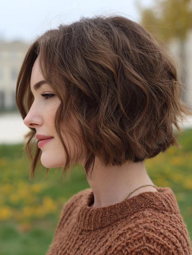 Soft waves add texture and the illusion of density. A chin or shoulder-grazing bob works best. This style flatters most face shapes and gives movement to fine strands.