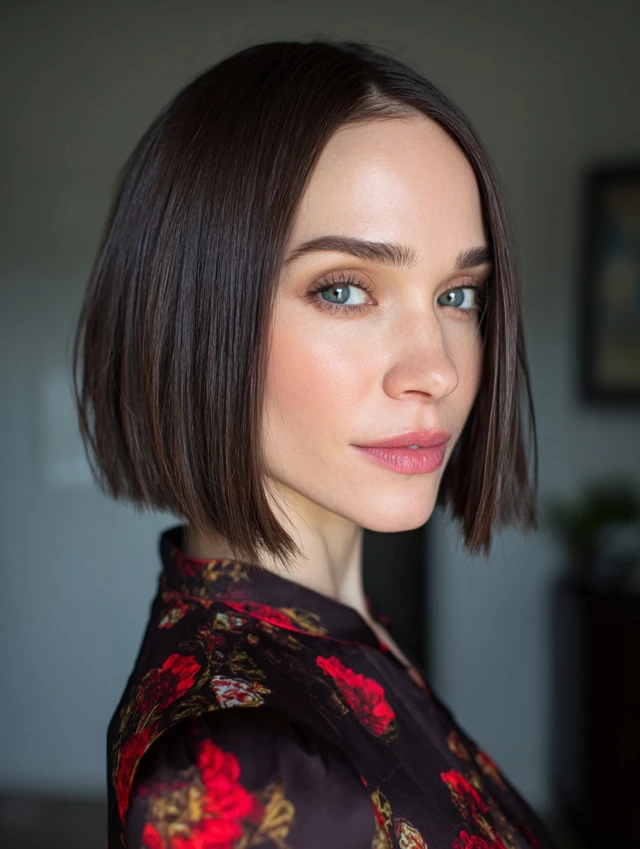 A blunt chin-length bob creates a dense, solid line at the ends. This makes hair look thicker instantly. It suits oval and heart-shaped faces. Fine straight hair benefits most from this clean cut.