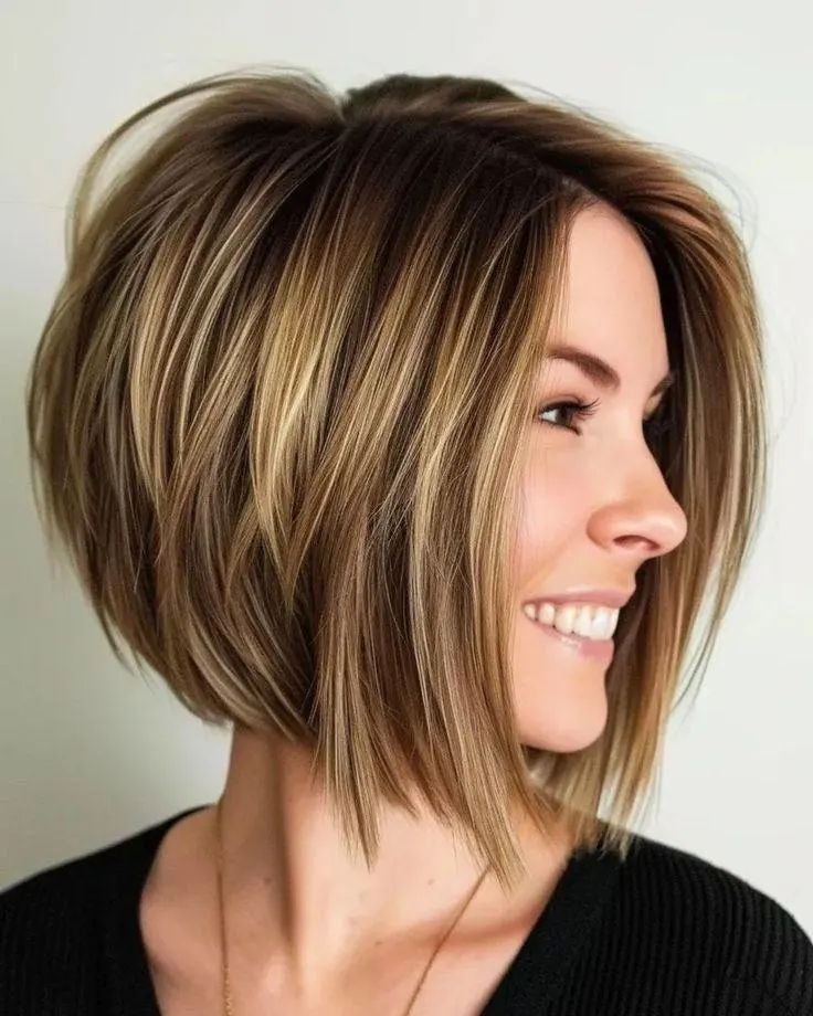 This cut works especially well for medium to fine hair because the layers create instant volume and movement. It’s the kind of bob that looks best slightly tousled, making it perfect for air-drying, quick blowouts, or a few swipes of texturizing spray for extra lift.