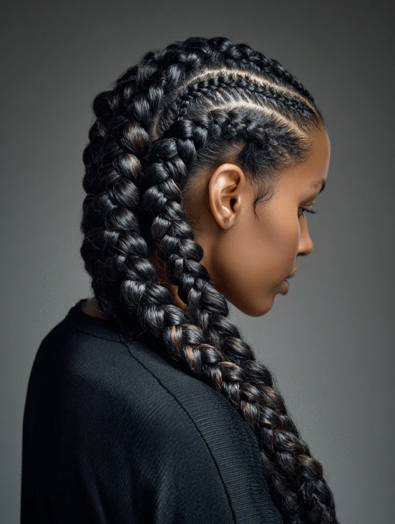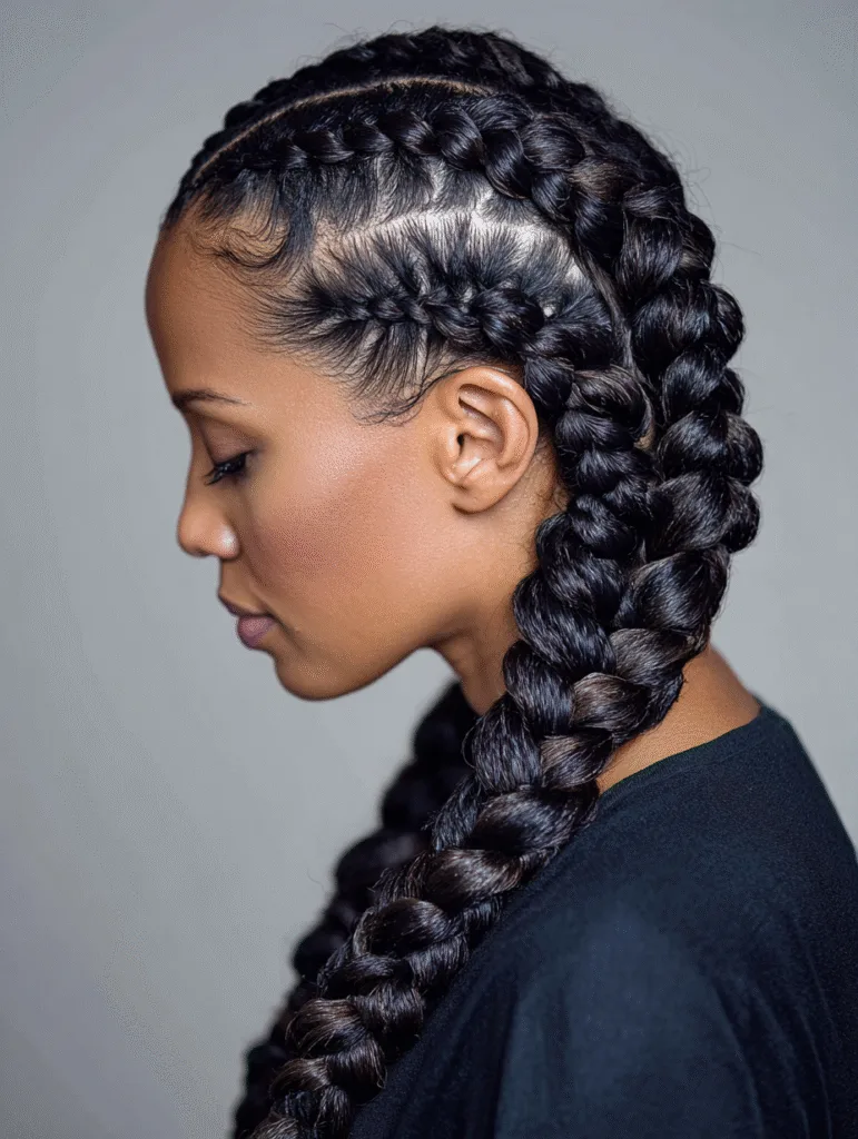 You can keep the braids short, medium, or long depending on your plans. Many people choose this style when they want something neat that still adds personality. The sideways flow keeps everything comfortable and easy to manage throughout the week.
