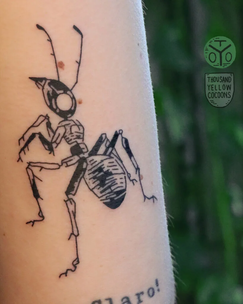 This design is perfect for someone who appreciates subtle, nature-inspired tattoos with a hint of humor or curiosity, symbolizing teamwork, resilience, or connection to the natural world. It’s a minimalist yet impactful choice that catches attention in an unexpected way.