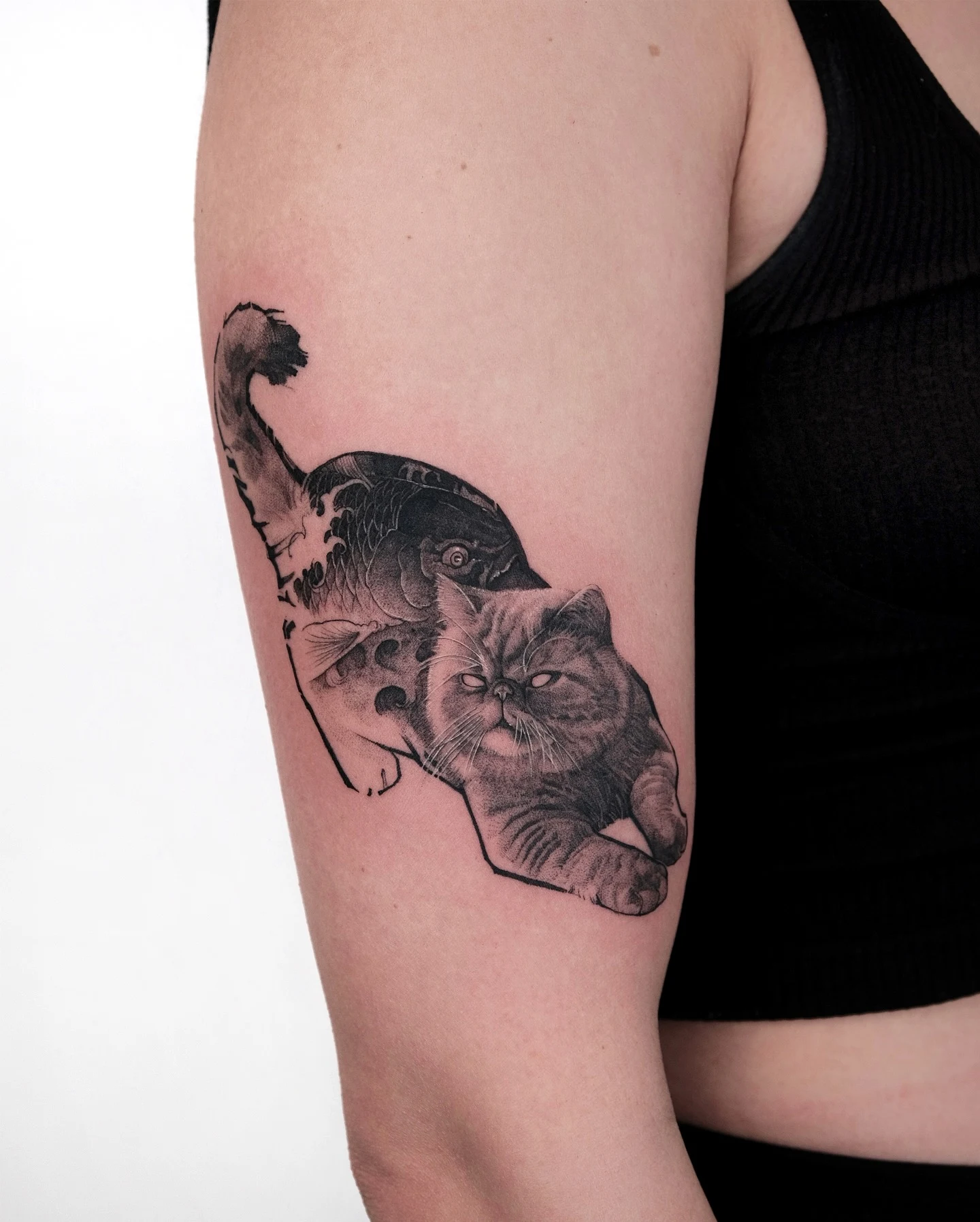 Surreal Cat and Fish Fusion Tattoo