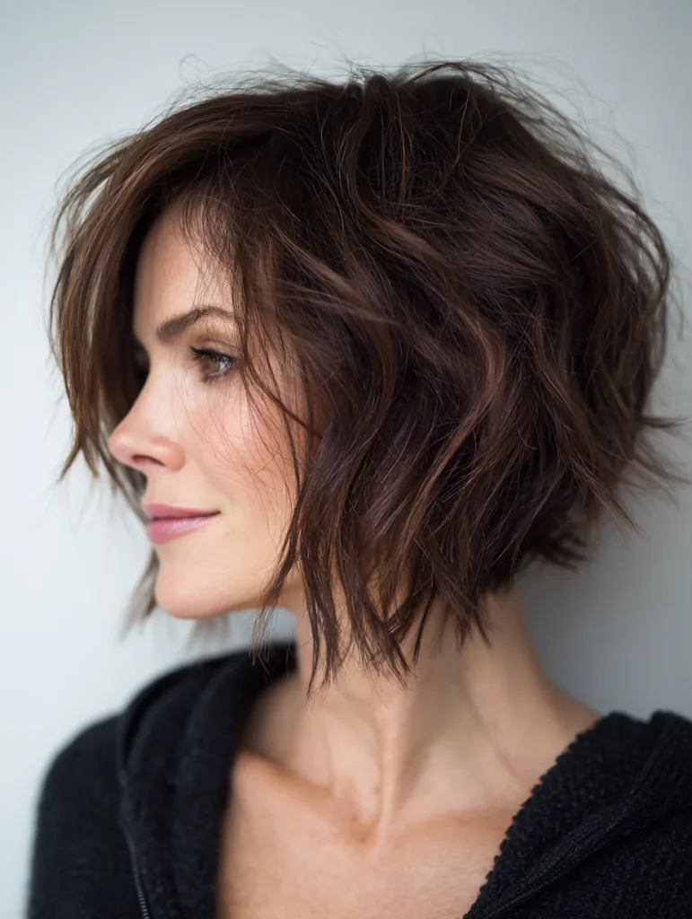 Tousled texture brings a relaxed feel to a choppy bob, creating movement that shifts naturally throughout the day. Light layering keeps weight away from the ends, allowing the pieces to separate easily. A stylist may soften the perimeter to prevent a harsh outline.