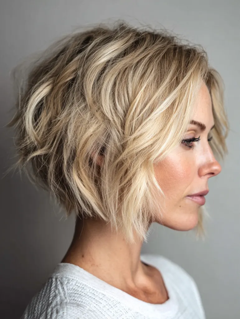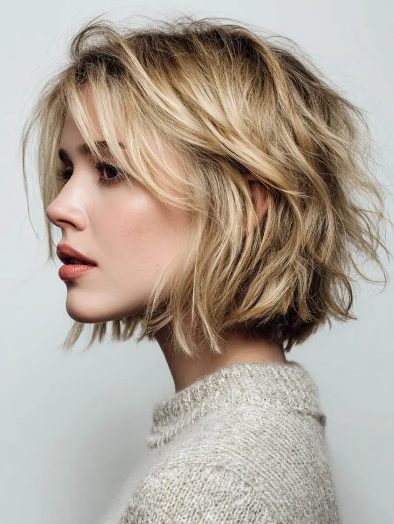 Tousled texture brings a relaxed feel to a choppy bob, creating movement that shifts naturally throughout the day. Light layering keeps weight away from the ends, allowing the pieces to separate easily. A stylist may soften the perimeter to prevent a harsh outline.