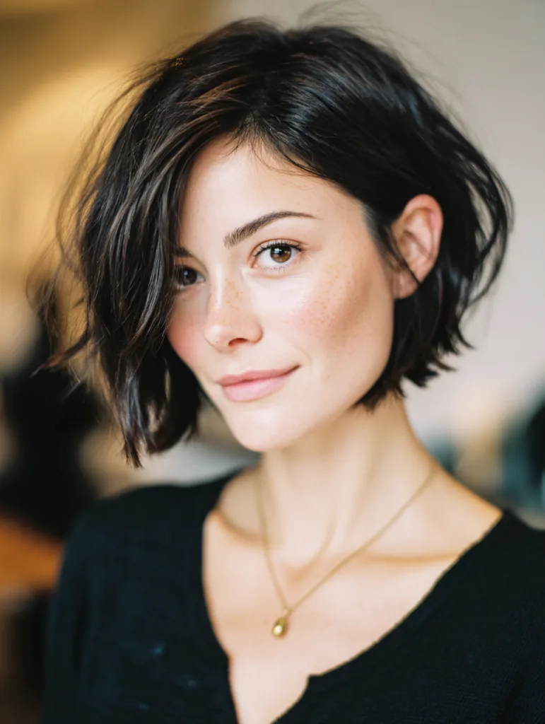 Some stylists add slight graduation in the back to keep the shape balanced. A quick finger tousle often activates the movement. This length feels practical, confident, and straightforward for anyone wanting a refined shorter look.