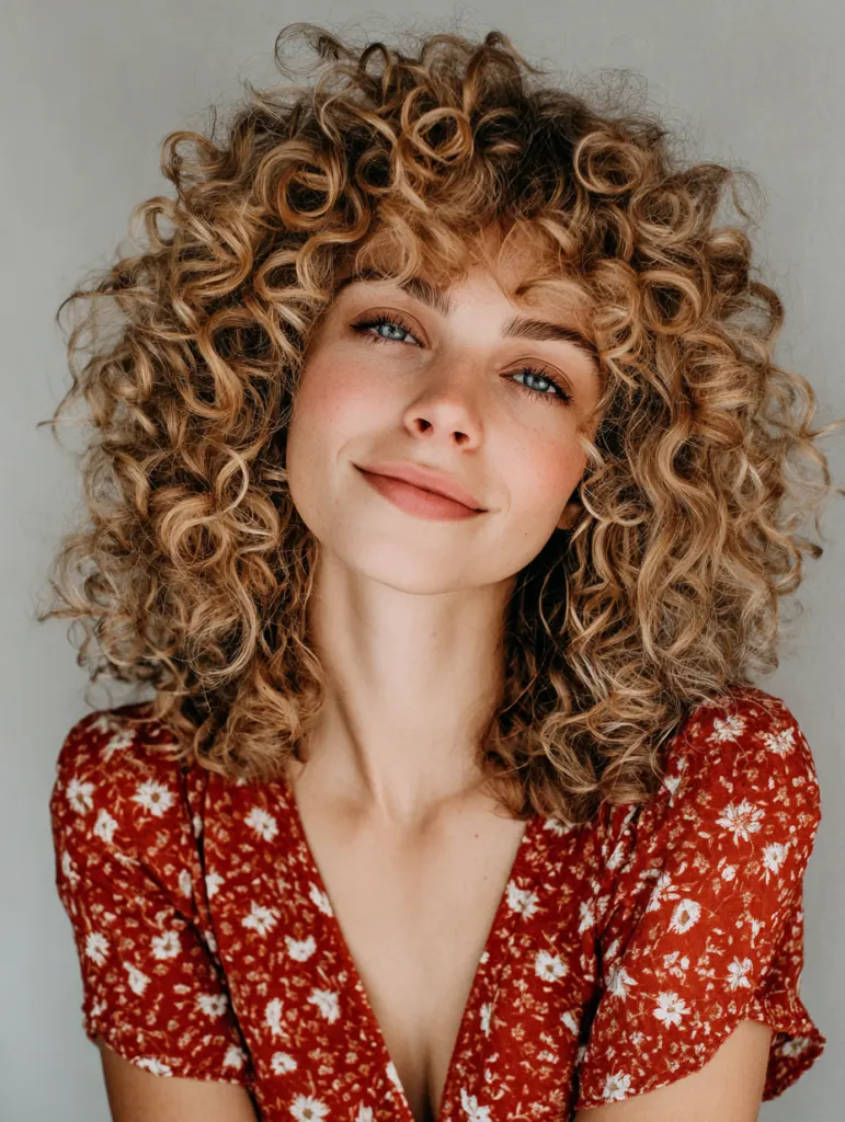 A shoulder length curly cut balances volume and shape without overwhelming the face. It suits round and oval faces especially well. Defined layers prevent bulk while keeping curls bouncy and light.