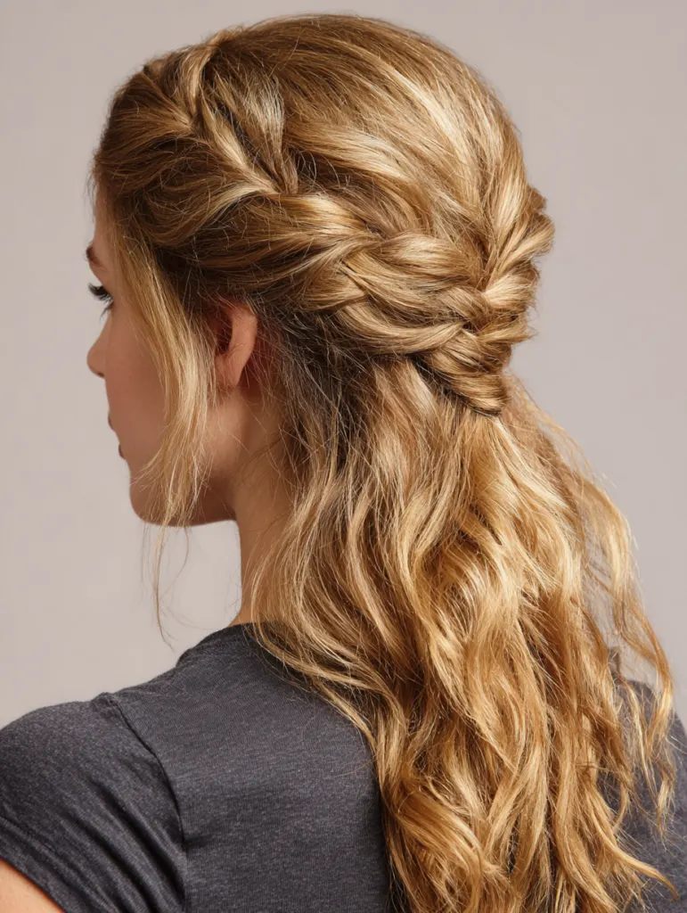 A half-up athletic braid blends freedom and control, which helps players who prefer hair off the face without fully tying it back. The top braid maintains focus by keeping front strands secure, while the loose bottom section still moves naturally.