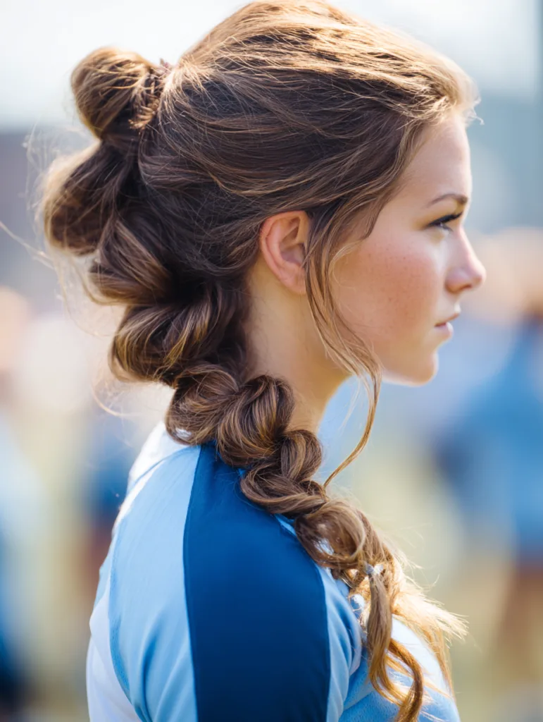 A messy athletic bun offers quick styling and strong control, making it useful during practice sessions or busy game days. Its loose structure still provides security because the twist anchors hair at the top. This style works for medium or long hair and suits players who prefer minimal prep.