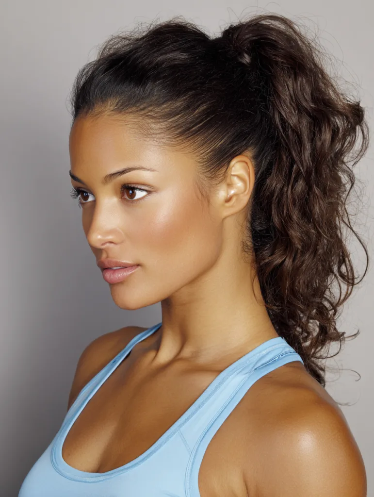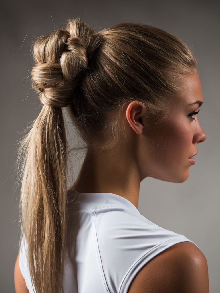 A knotted high ponytail adds extra stability because the knot reinforces the base, helping it withstand intense motion. The height lifts weight from the neck, which supports comfort during fast transitions. This style works well for long or medium hair and suits straight or wavy textures.