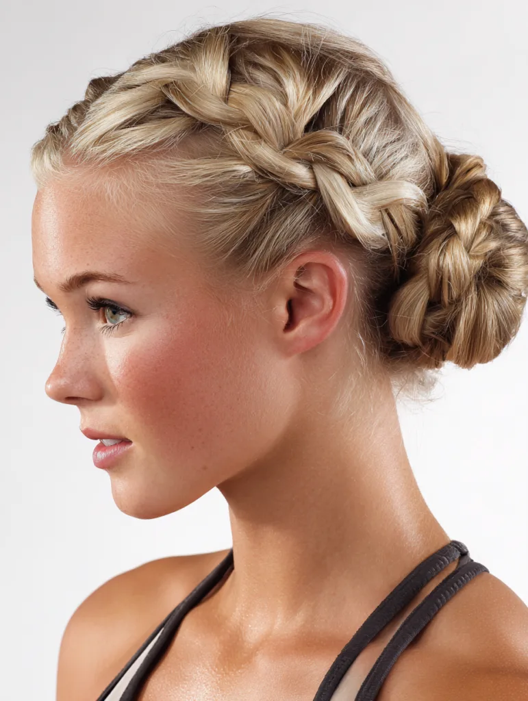A high braided ponytail helps athletes manage heavy hair while keeping it completely off the neck during intense games. The braid reinforces the ponytail, ensuring it won’t loosen during jumps or sudden direction changes.