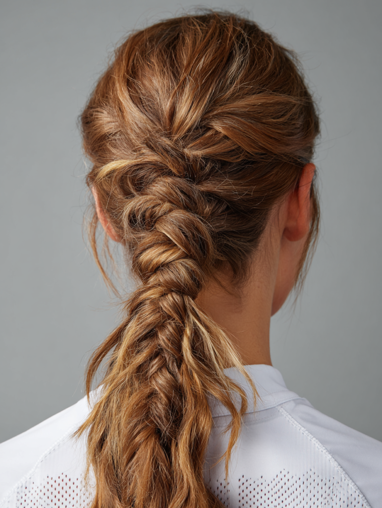 A fishtail braid ponytail combines a secure hold with flexible movement, making it helpful during long, demanding games. The braid keeps strands tight, preventing loose pieces from affecting eyesight during quick plays.