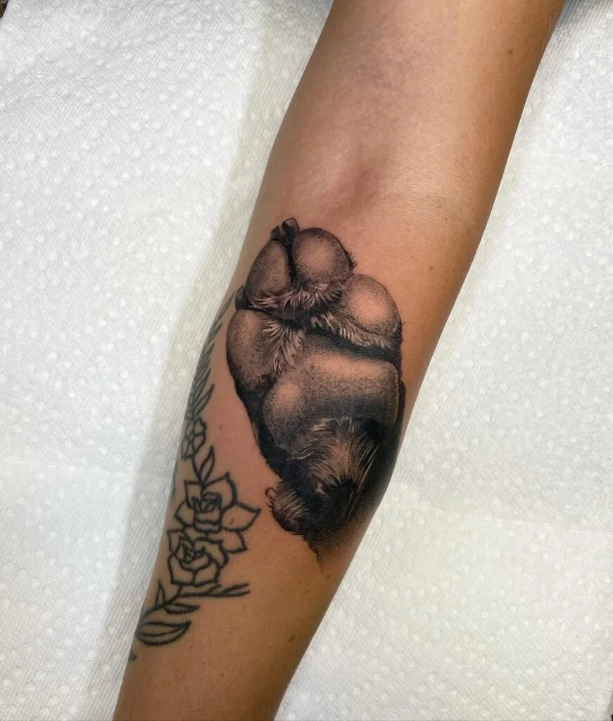 The simplicity of the design focuses on the personal connection between the pet and its owner, making it a powerful and meaningful tribute. By imprinting the paw directly on the skin, this tattoo becomes a lasting symbol of the cherished memories and love that remain long after the pet’s passing.