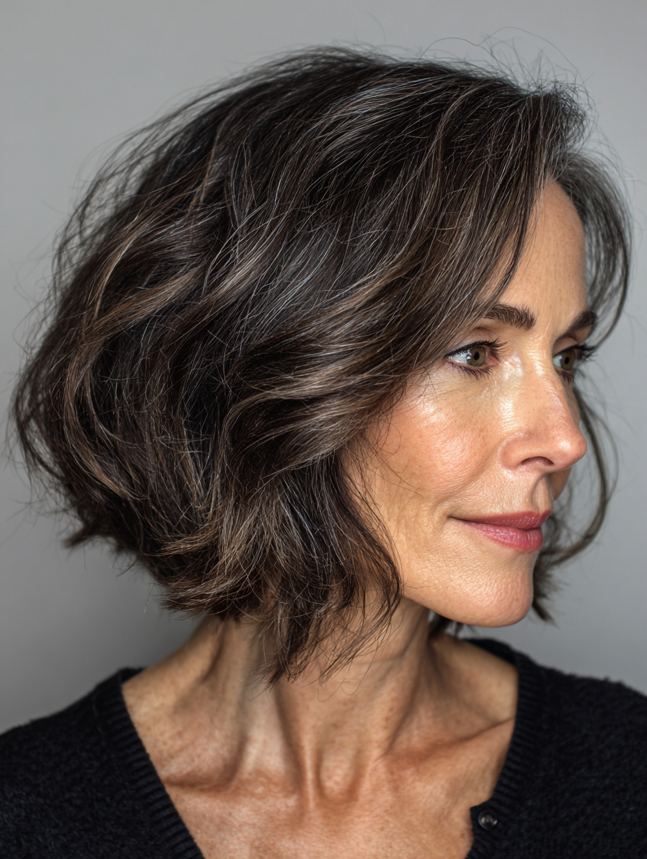 A soft layered bob offers structure without feeling heavy or strict. Layers add movement, which helps fine or thinning hair appear fuller. The length frames the face gently, softening jawlines and highlighting cheekbones. This style suits oval, round, and square faces well. It works best for straight to slightly wavy textures and stays manageable between trims.