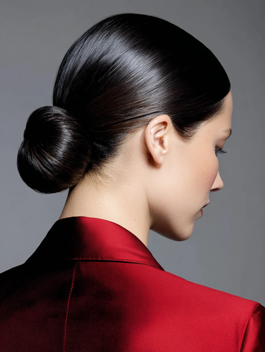 If you have thick hair, use a strong elastic first, then pin in small sections. For curly hair, smooth only the surface and keep the bun slightly fuller for softness. Add a side part if you want a more formal hairstyle with extra shape. This style works best when you need long wear and minimal fuss.