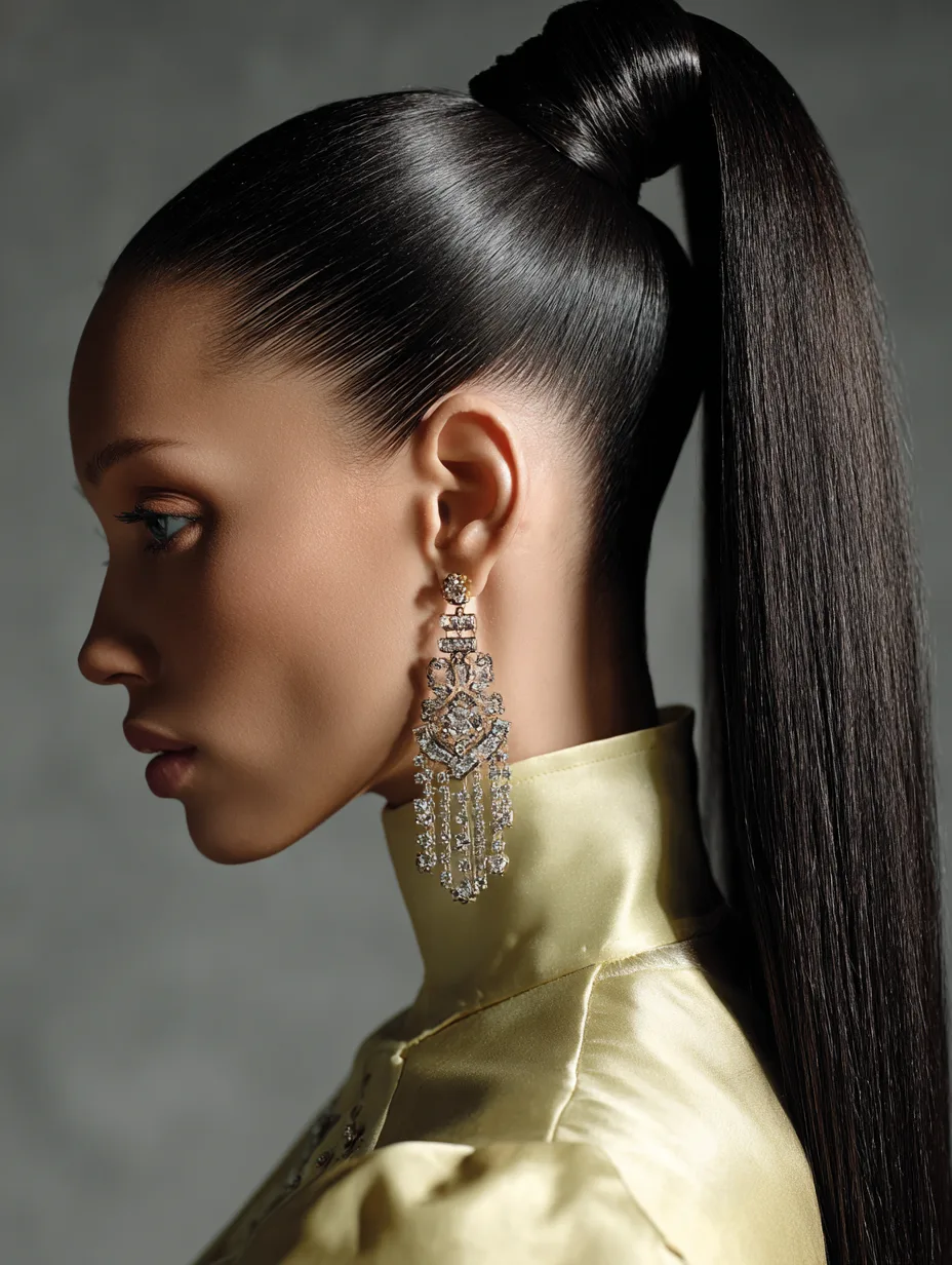 For comfort, anchor the ponytail with two elastics and a few hidden pins. If your hair is fine, add a lightweight ponytail extension for fullness. Wrap a small section of hair around the band to keep it looking formal. This hairstyle works well for proms, evening parties, and dressy birthdays.
