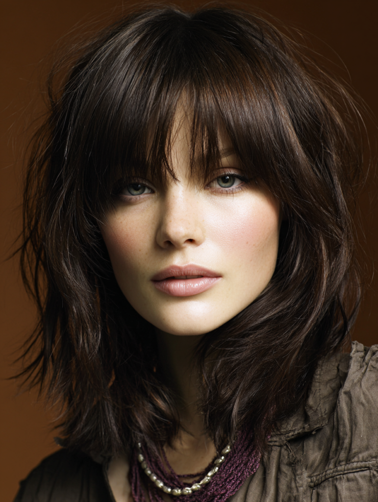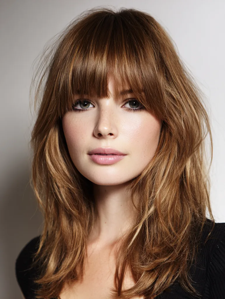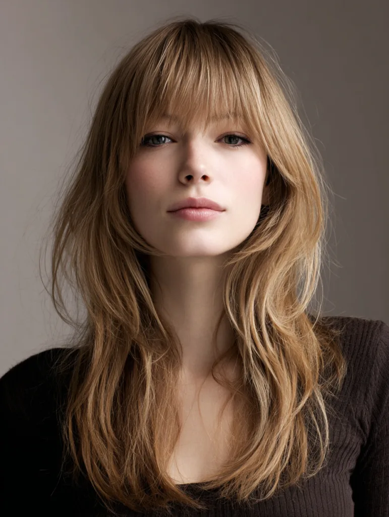 A wispy fringe hairstyle uses light, feathered ends that blend into the rest of the hair. It flatters round and heart shaped faces by adding softness. Fine to medium hair handles this style well. Styling stays easy because it moves naturally.