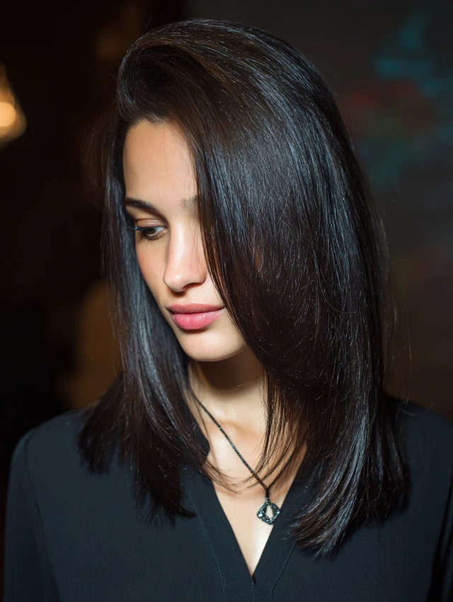 A deep side part instantly changes proportion. It draws the eye diagonally instead of vertically. A long bob keeps structure balanced and modern.
