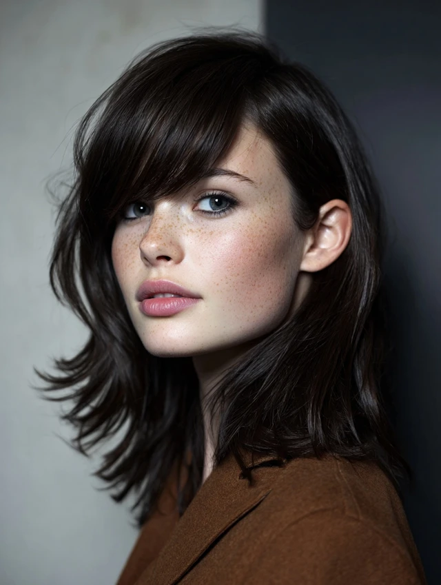 Blow-dry bangs to one side for structure. Keep the rest slightly textured. This version works for workdays and social events.