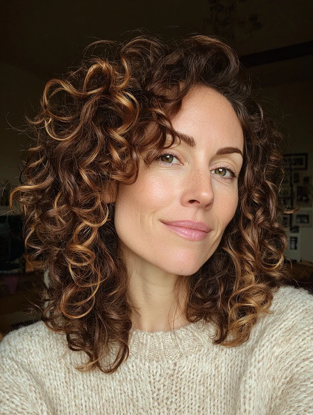 Soft curls reduce sharp angles naturally. Layers distribute volume evenly and avoid width at the jaw. This style flatters square faces by adding rounded movement.
