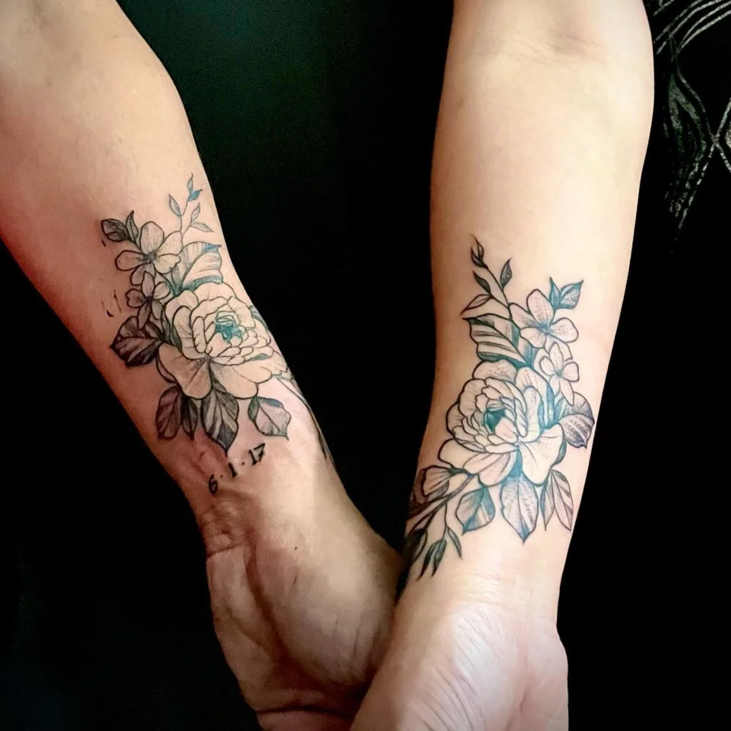 One tattoo includes a date, likely marking a special moment in their relationship. Placed on their wrists, these tattoos serve as a constant reminder of their bond, representing a love that continues to flourish just like the flowers inked on their skin.
