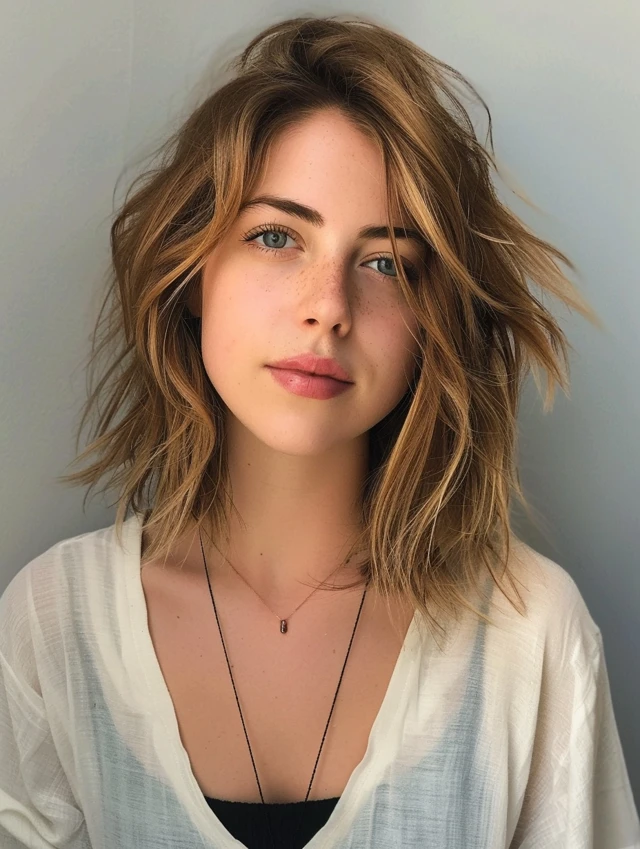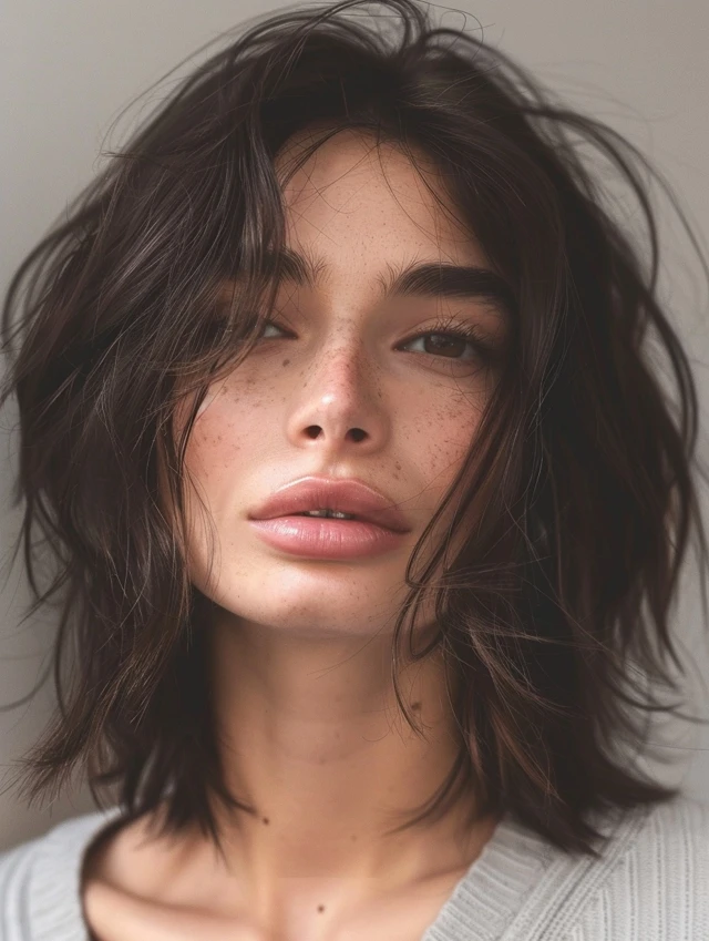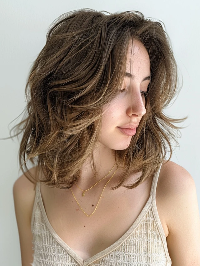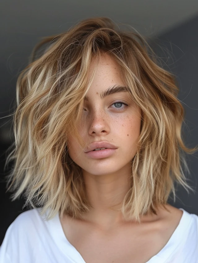 Choppy ends add texture and prevent fine hair from appearing flat. It’s versatile for casual, messy, or playful looks.
