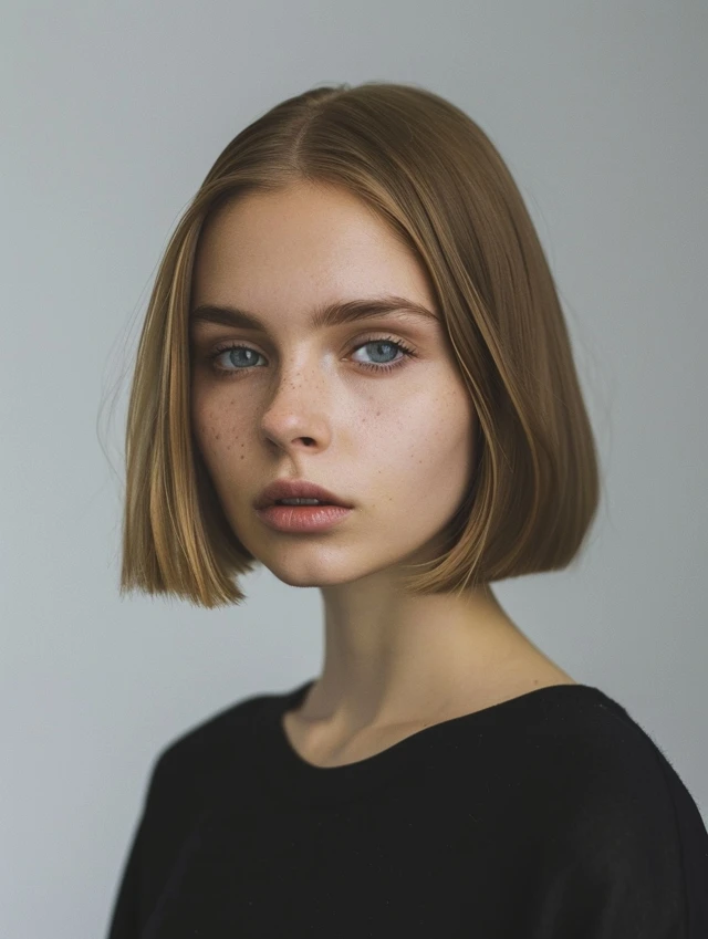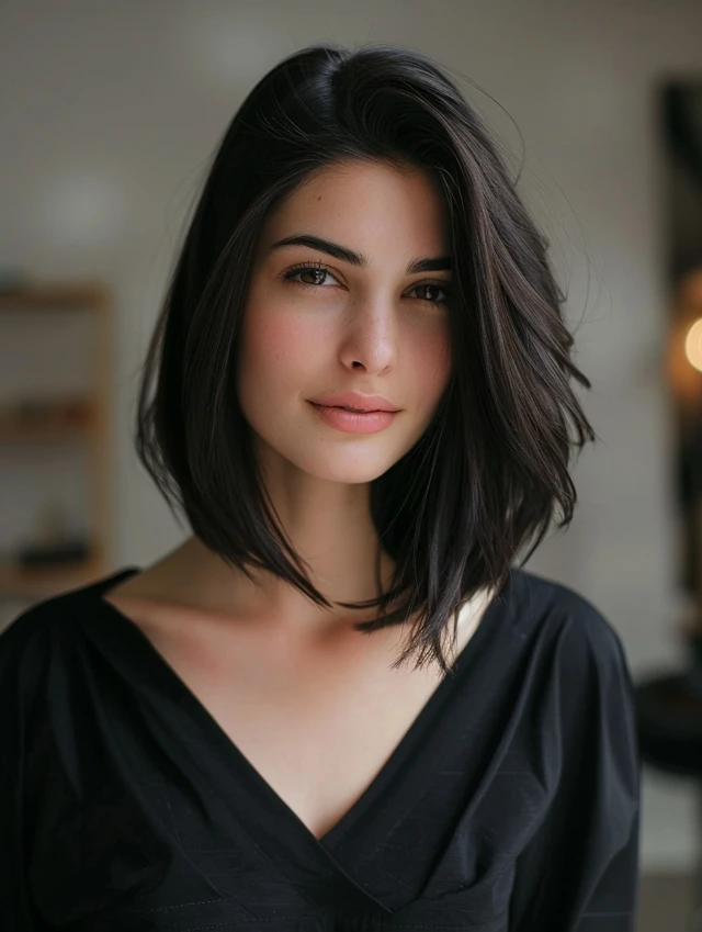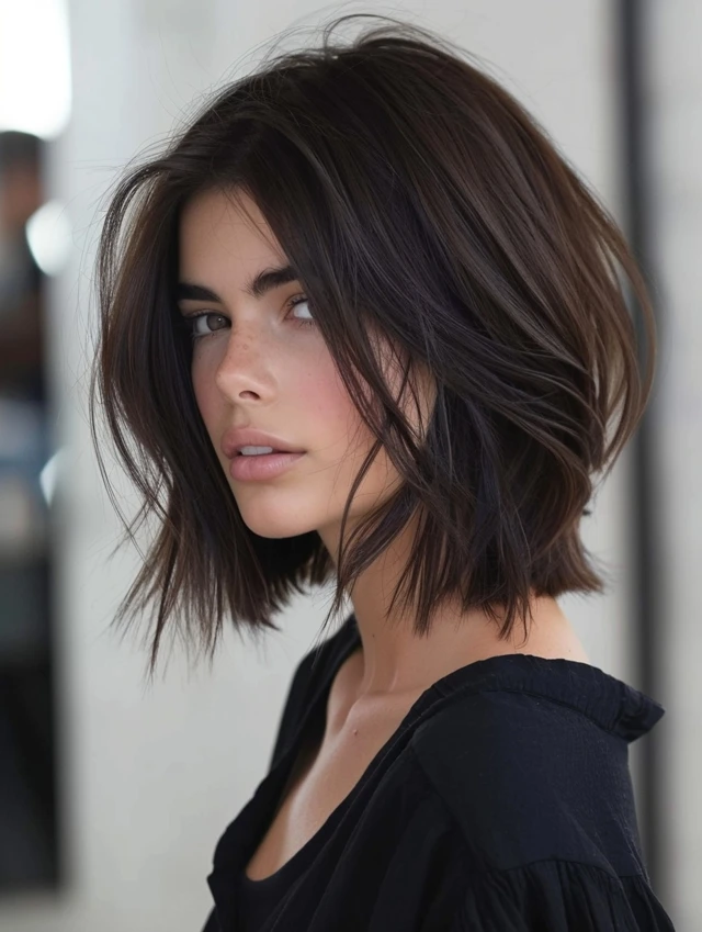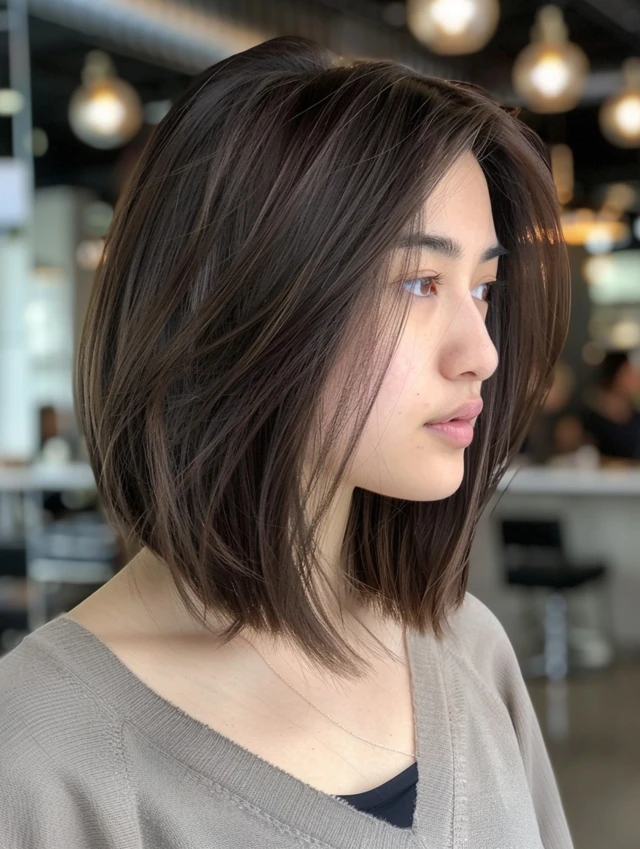 A blunt lob has clean, straight ends that make hair appear thicker. It suits fine, straight hair and gives a sharp, polished look.