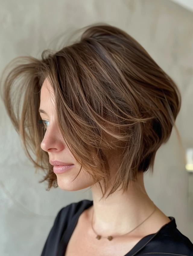 One side slightly longer than the other adds dimension and style to fine hair. It suits square and round faces, giving an edgy, modern look.