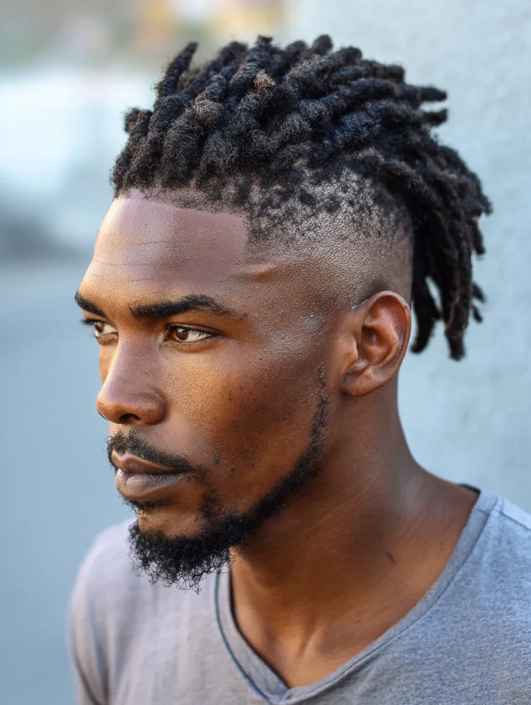 High top locs with tapered sides create a clean shape that feels modern and sharp. The taper keeps the look fresh while the locs add texture and height. This style suits men who want something bold but still easy to maintain.