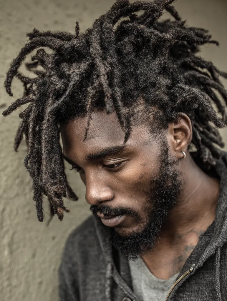 Freeform locs work best when you embrace irregular patterns since each section develops differently. The look feels grounded and real, which appeals to men who want authenticity over symmetry. You can pair the locs with a beard for a stronger, cohesive style.
