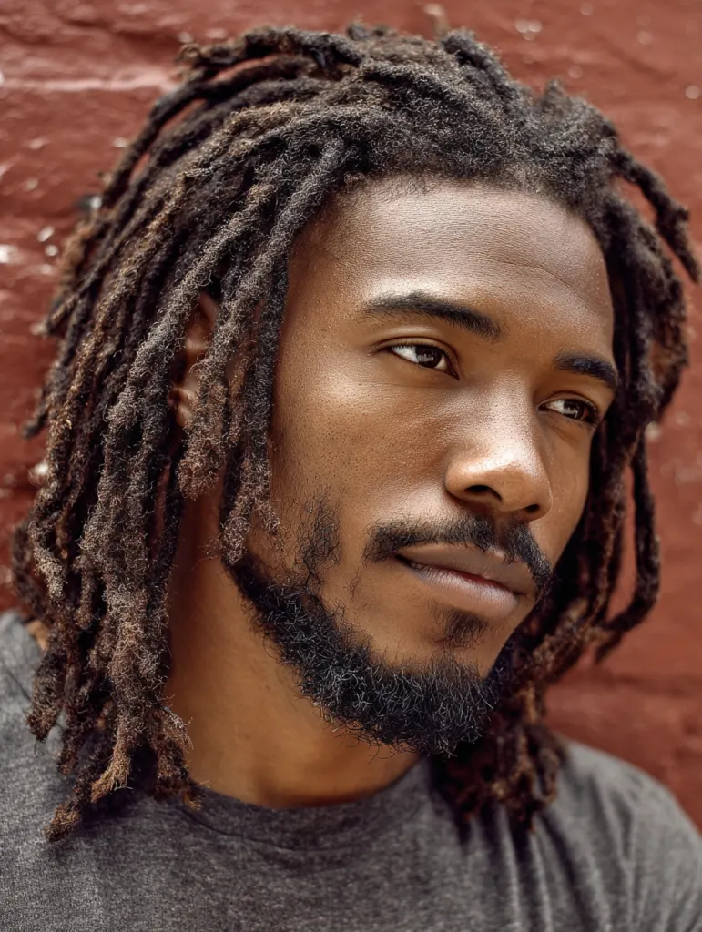 Daily care stays simple when you maintain moisture and keep the scalp clean. The style works in casual and creative environments because it feels confident without forcing extra styling. Many men choose this length when they want a timeless look that evolves as the locs mature.
