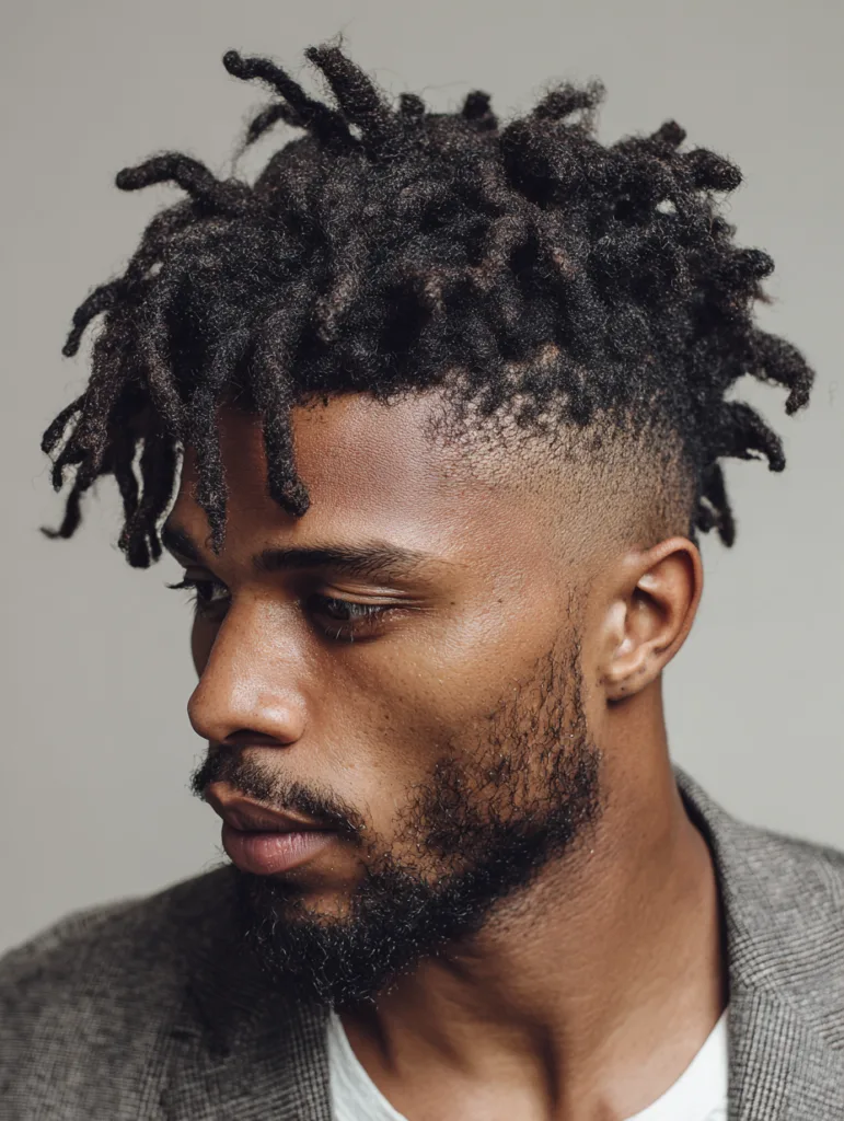 High top locs with tapered sides create a clean shape that feels modern and sharp. The taper keeps the look fresh while the locs add texture and height. This style suits men who want something bold but still easy to maintain.