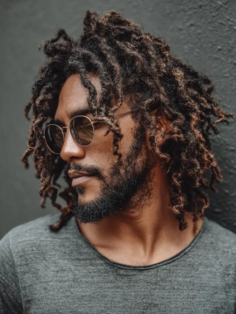 Classic shoulder-length locs offer a balanced look that fits relaxed and structured settings. The length gives movement without demanding constant styling, which helps men who want something easy to manage. Regular maintenance keeps the locs neat, but the style still feels natural and expressive.