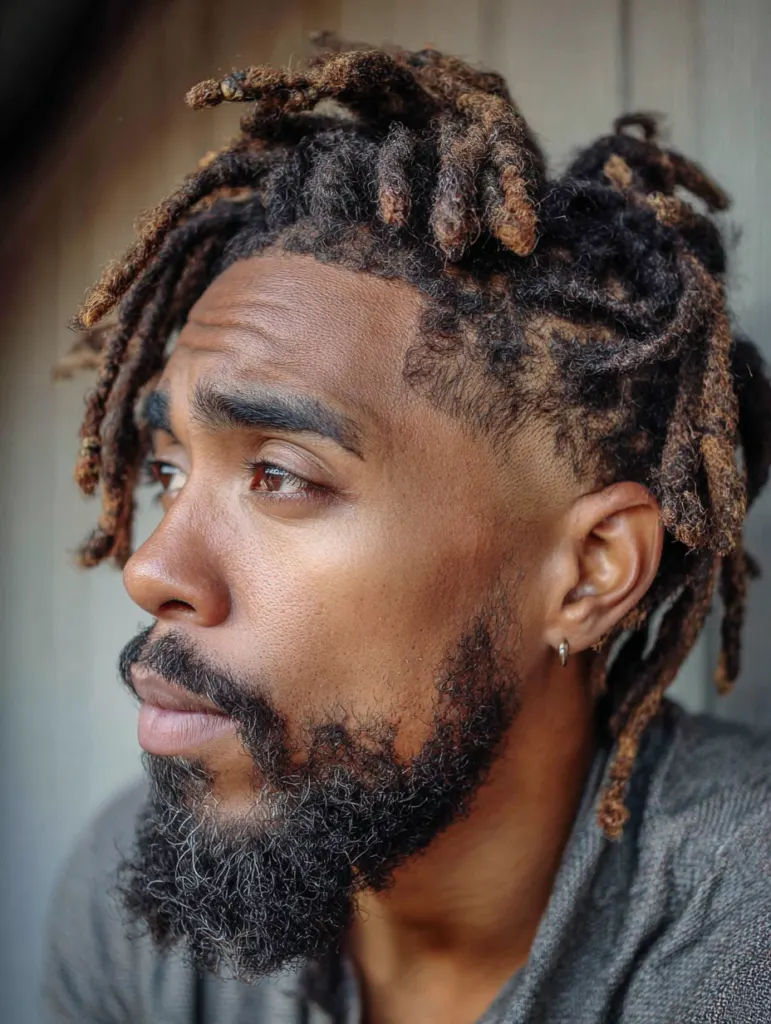 Freeform locs work best when you embrace irregular patterns since each section develops differently. The look feels grounded and real, which appeals to men who want authenticity over symmetry. You can pair the locs with a beard for a stronger, cohesive style.