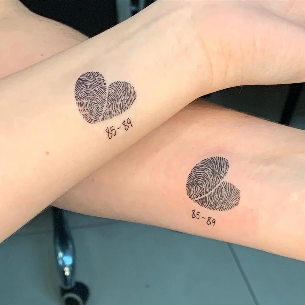 5. Matching Heart and Fingerprint Sister Tattoos