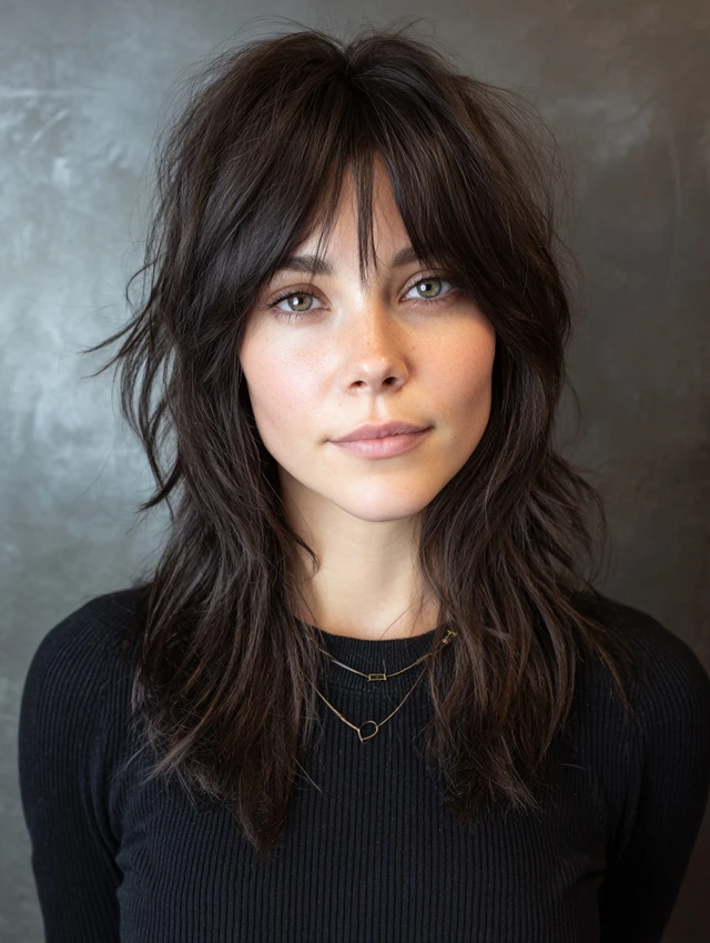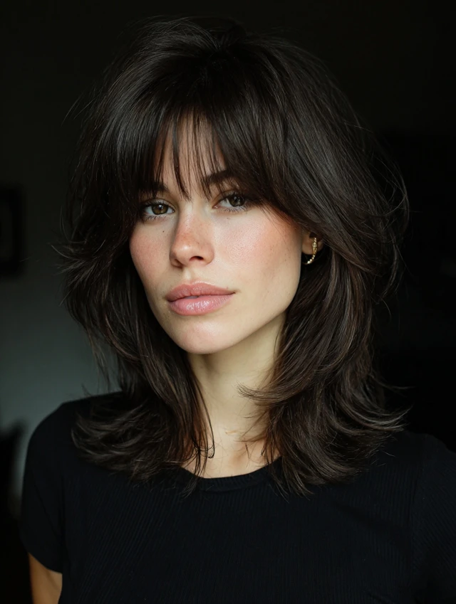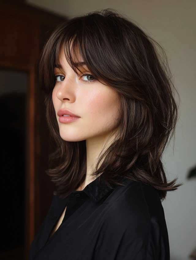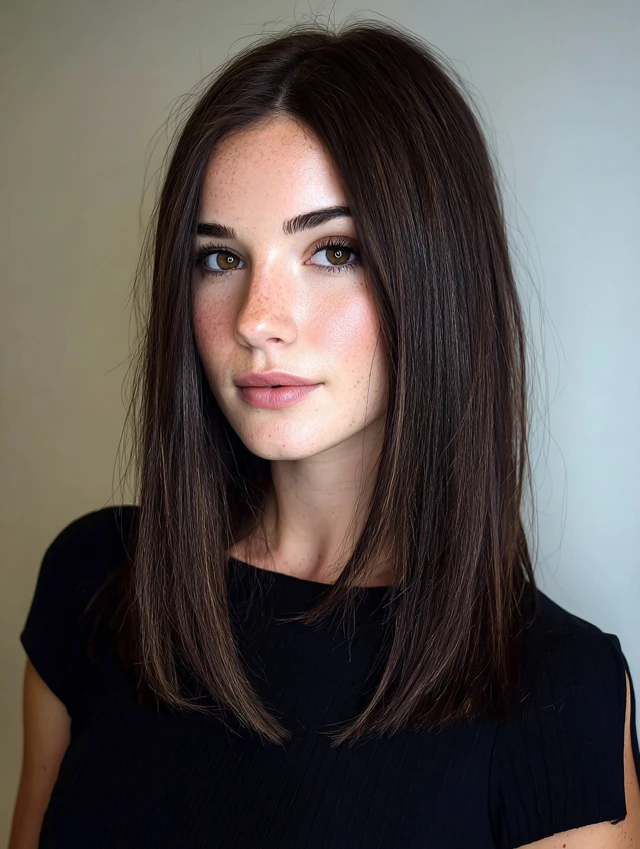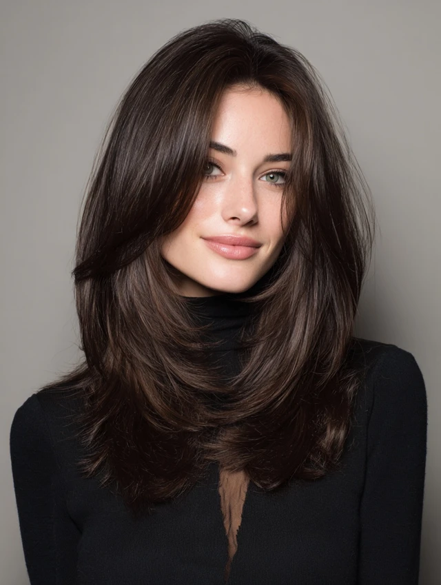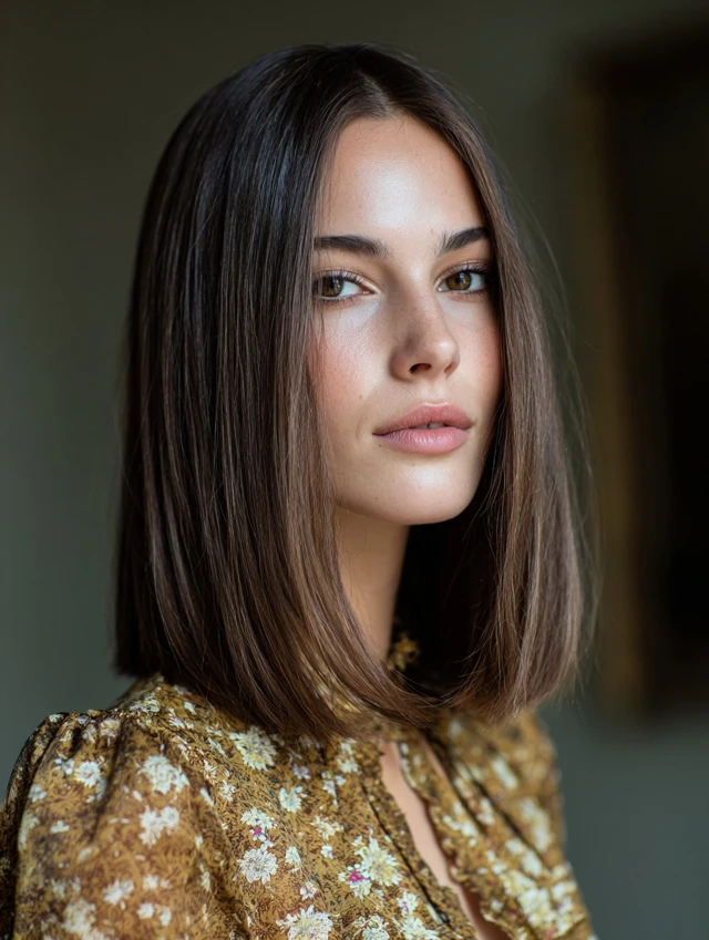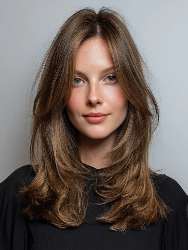 A layered shoulder-length cut adds movement without changing your face shape. It highlights cheekbones and keeps the jawline soft. Fine hair benefits from subtle layers for lift, while thick hair feels lighter with internal layering.