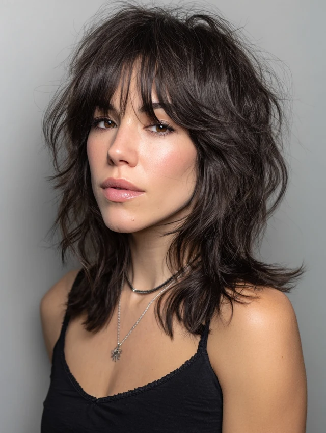 A medium shag adds volume and visible layers. Oval faces carry this style easily because the proportions stay balanced. Thick hair benefits most from the layered removal of weight.