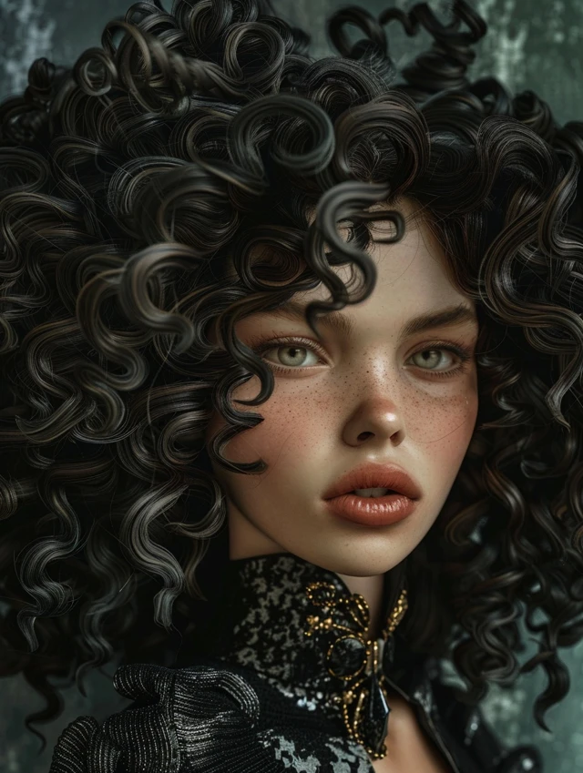 Classic Medusa curls feature tight, well-defined coils all over the head. Works for oval and heart-shaped faces, adding structure and volume. Fine hair appears thicker due to the curl density, while thick hair gains shape and control.