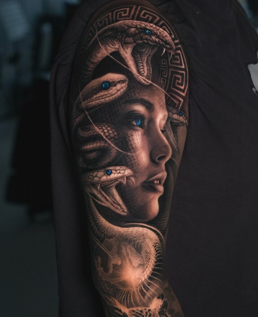 Realistic Medusa Beauty and Serpent Tattoo