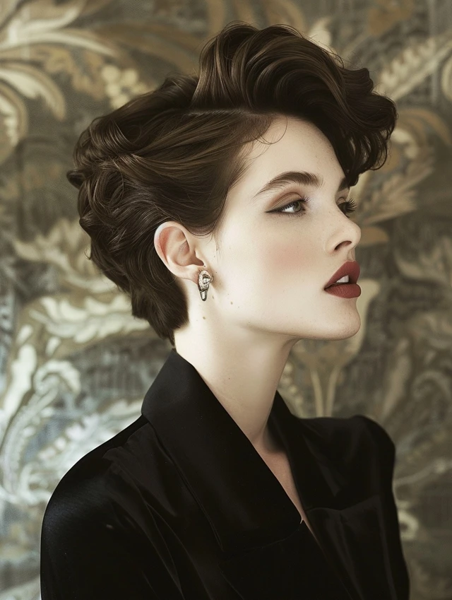 A sleek short cut with soft edges delivers confidence and refinement. It suits oval and square faces, drawing attention to eyes and cheekbones. Fine hair looks neat and full, while thick hair stays controlled.