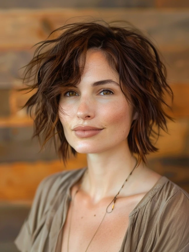 A choppy, layered bob adds structure and movement. Works for oval, round, and square faces, softening angles while giving volume to fine or medium hair. Layers enhance a rugged, windswept pirate look.