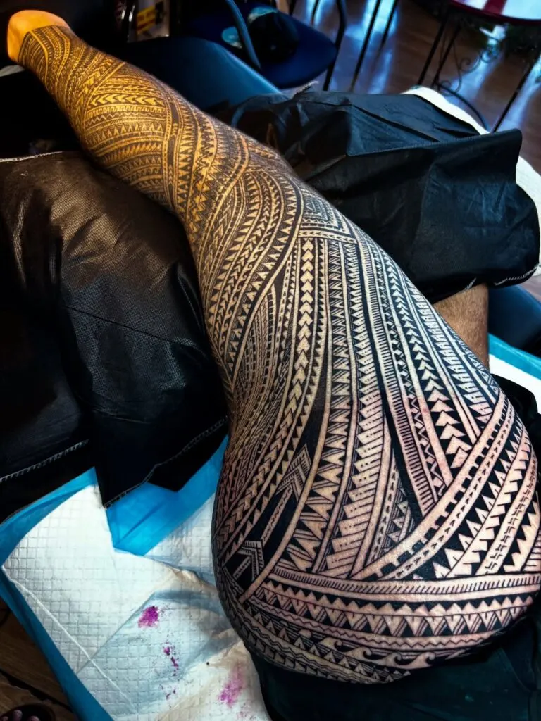 Full Leg Polynesian Tattoo Sleeve