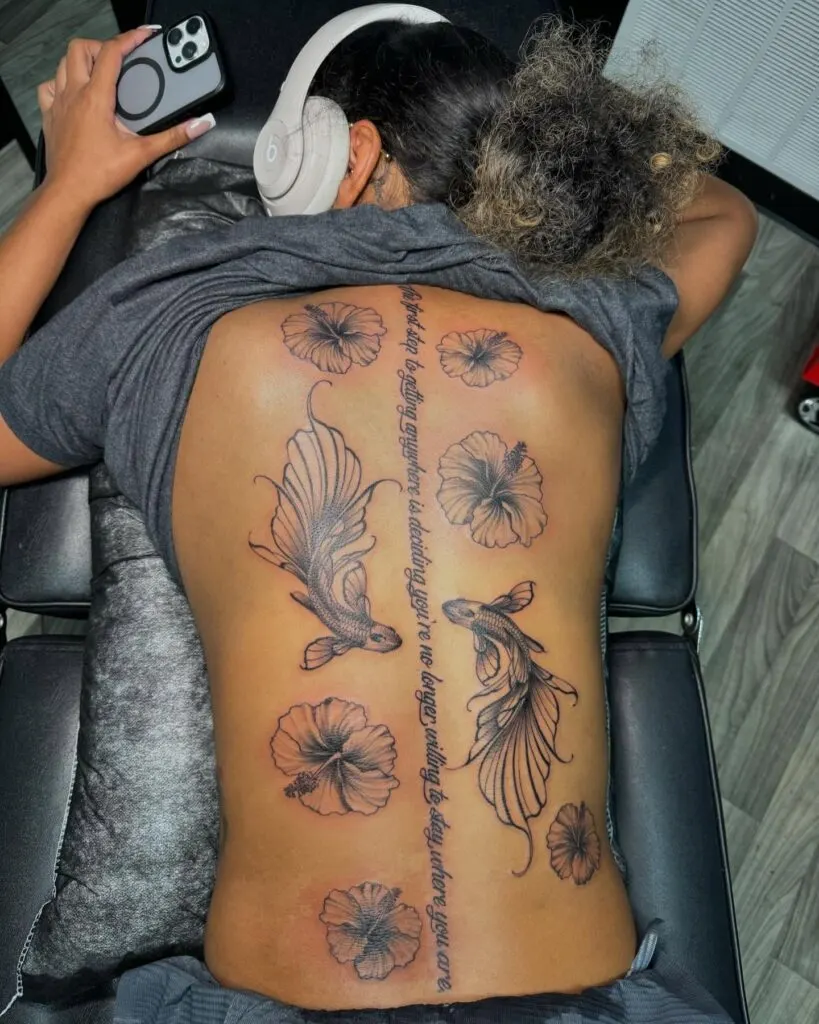 The upper back is flatter and good for symmetrical or centered designs, while the lower back works well for curved or horizontal ones. Though it’s not easily visible to the wearer, back tattoos are timeless and can be easily hidden for professional settings. You’ll need help during aftercare, especially with moisturizing and keeping it clean.