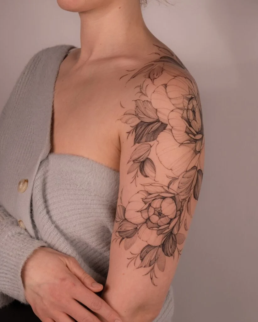 Shoulder tattoos are bold yet easy to hide, making them perfect for women who want balance.