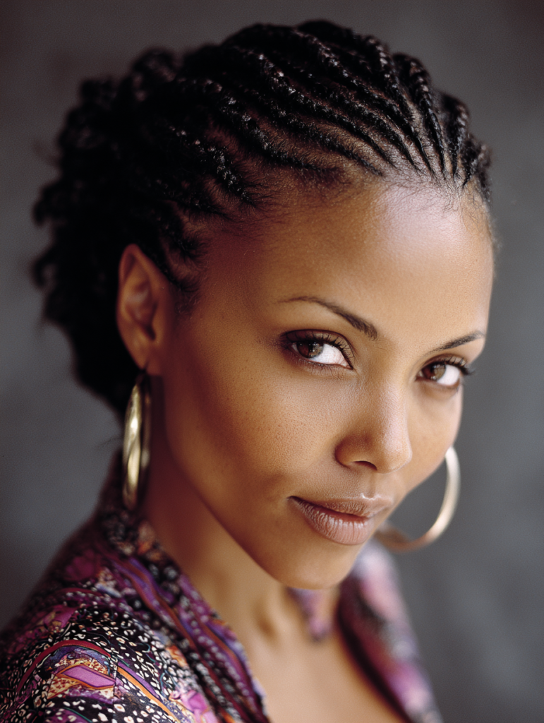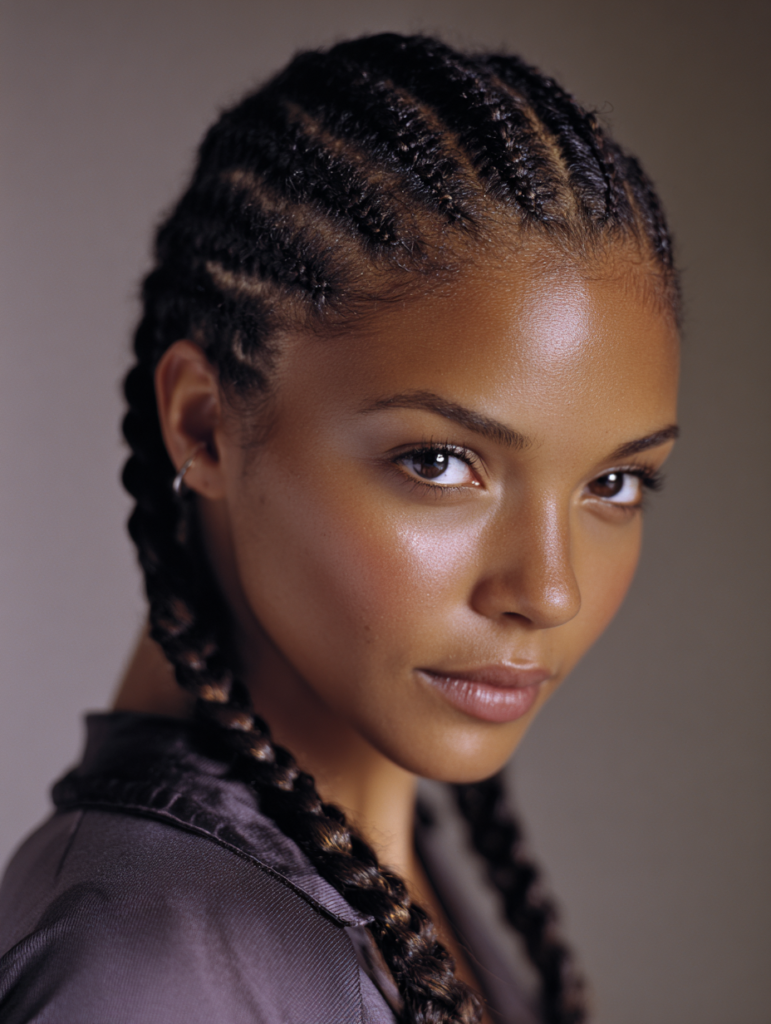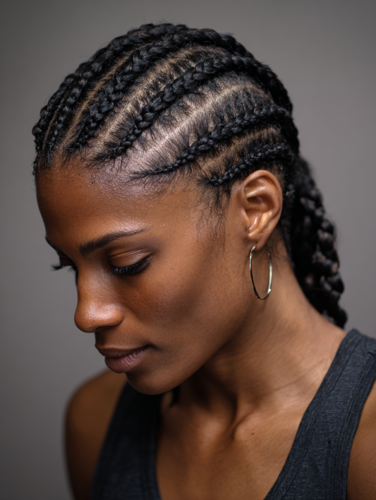 Cornrows keep hair close to the scalp, making them practical for active lifestyles. They suit oval, heart, and angular face shapes well. This style works best for tightly coiled and kinky textures that hold structure.