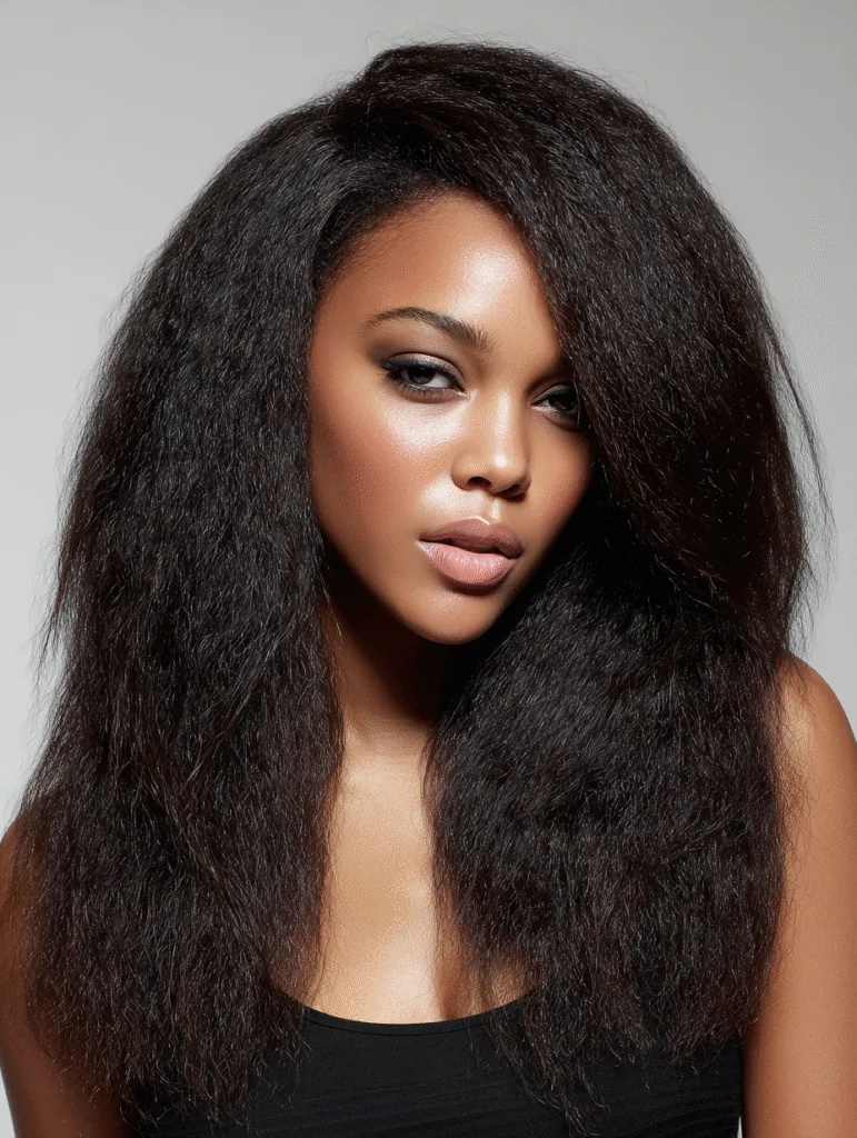A kinky straight quick weave delivers a natural, textured look that offers volume without losing softness. The stylist installs full tracks, then blends your leave-out to create a seamless finish. The texture holds its shape well, which helps the hair stay full even on active days.